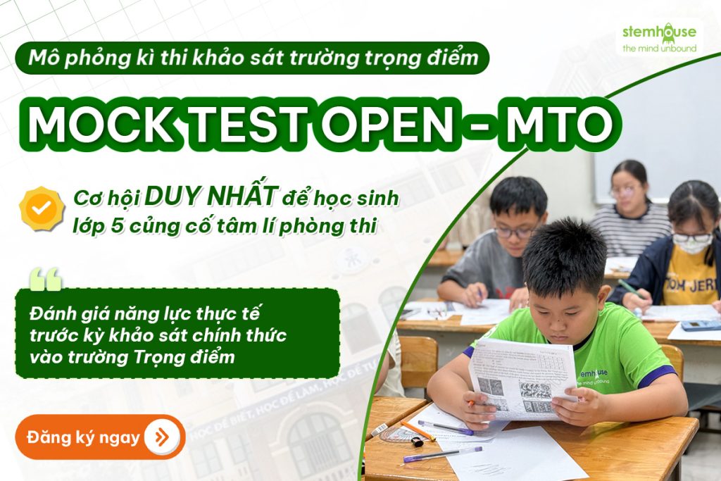 Stemhouse đã xây dựng hệ thống Mock Test Open (MTO) hơn 10 năm qua, mô phỏng kỳ thi khảo sát vào lớp 6 các trường trọng điểm TP.HCM.