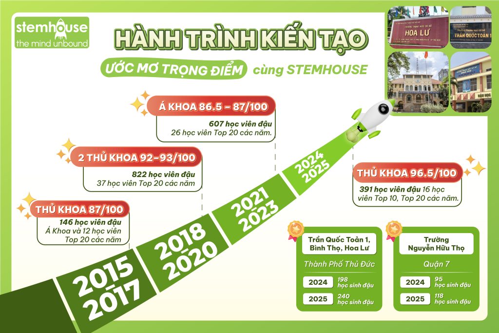 Đặc biệt: Trong Tuần lễ Tuyển sinh “Đón cơ hội vàng” (27/04 – 17/05), Stemhouse dành tặng đặc quyền Test năng lực tư duy IQ miễn phí và tư vấn lộ trình 1:1 dành riêng cho mục tiêu vào trường chuyên.
